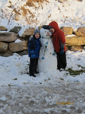 The party followed us from Boise to our house. My parents, sister, Tami, and my sister Angela and her 3 kids came and stayed with us for the week of Thanksgiving. Here are Jacob and Lucas with their snowman.