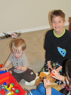 Lucas is also so good with Carter and is such a sport, letting Carter play with all his toys. Lucas is becoming a great reader just like his brother and sister.